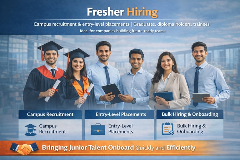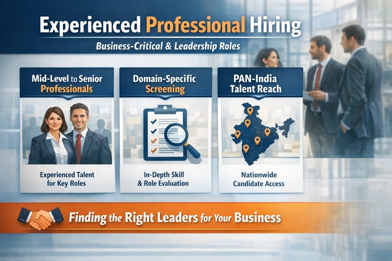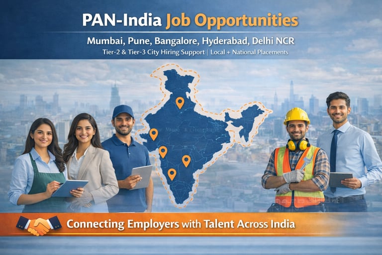 We provide PAN-India hiring support, including metro, Tier-2, and Tier-3 cities.